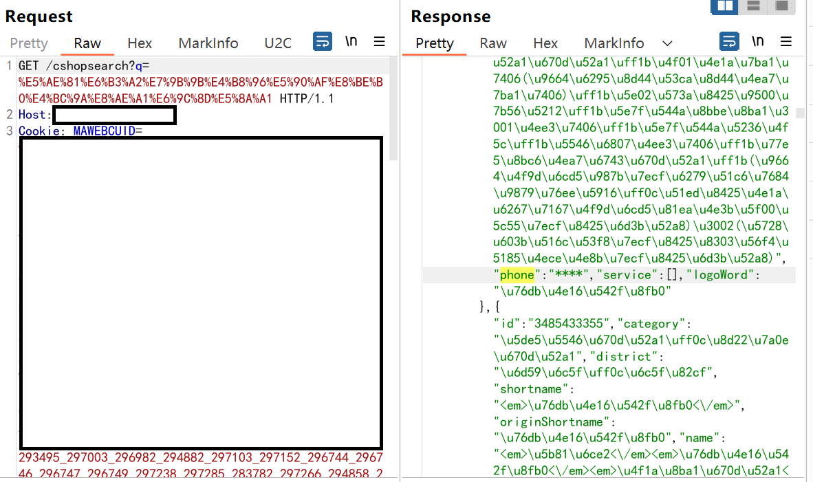 猜测该漏洞存在的原因是请求商家信息的回显中没有做好脱敏处理